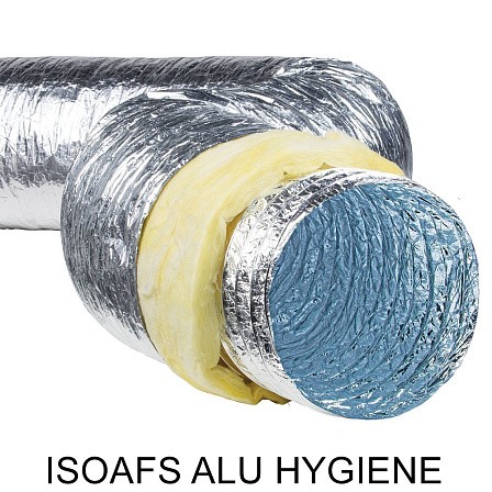 Теплоизолированные воздуховоды ISOAFS-ALU HYGIENE дополнительно имеют изоляционный слой из стекловолокна и наружный алюминиевый пароизоляционный слой.
