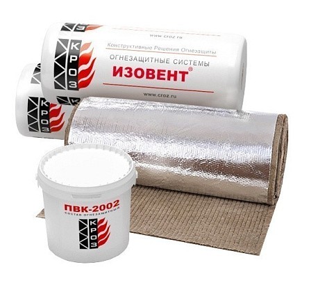 Изовент - комбинированное огнезащитное покрытие на основе базальтового рулонного материала, кашированного алюминиевой фольгой, и клеевого состава ПВК-2002.
