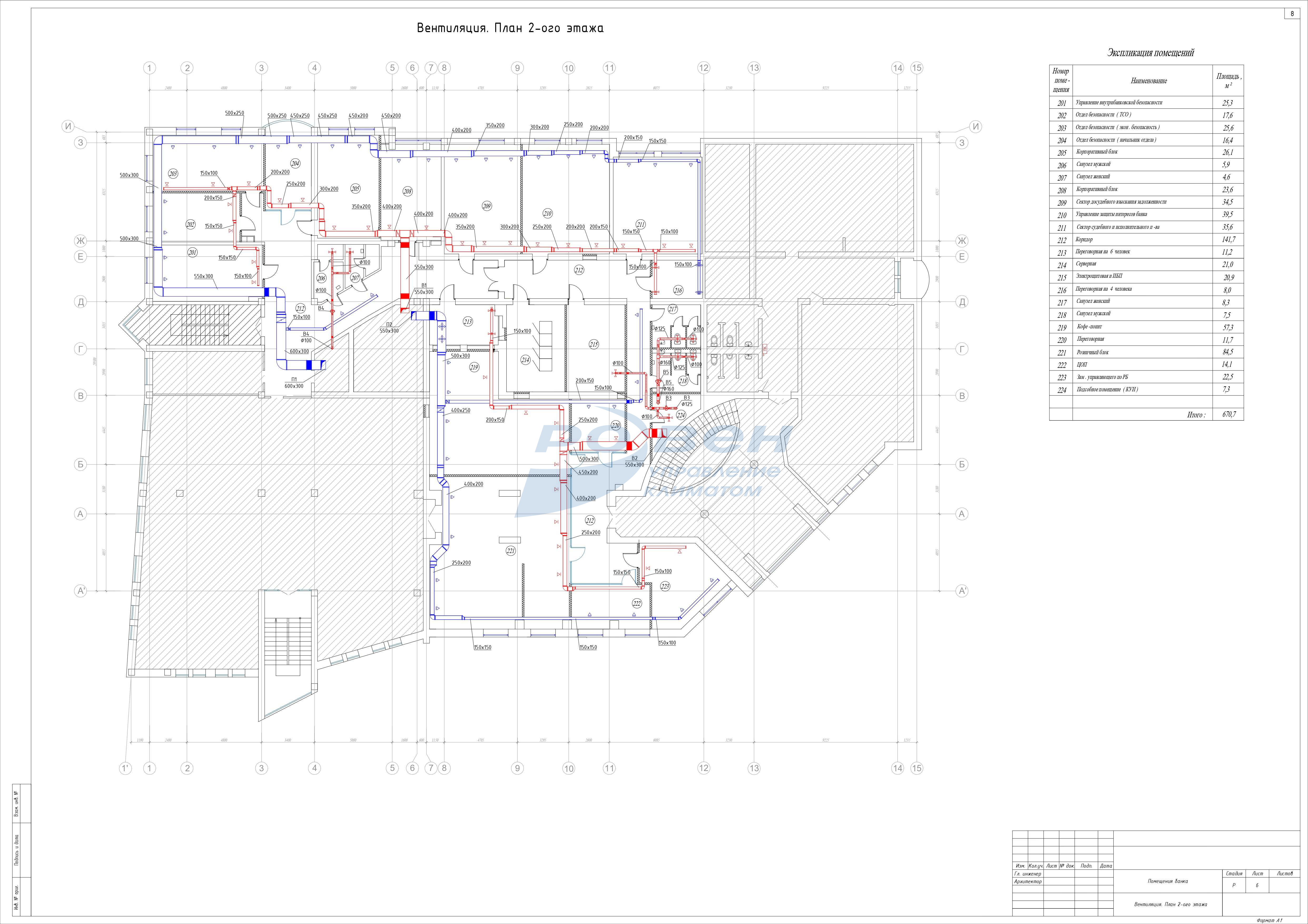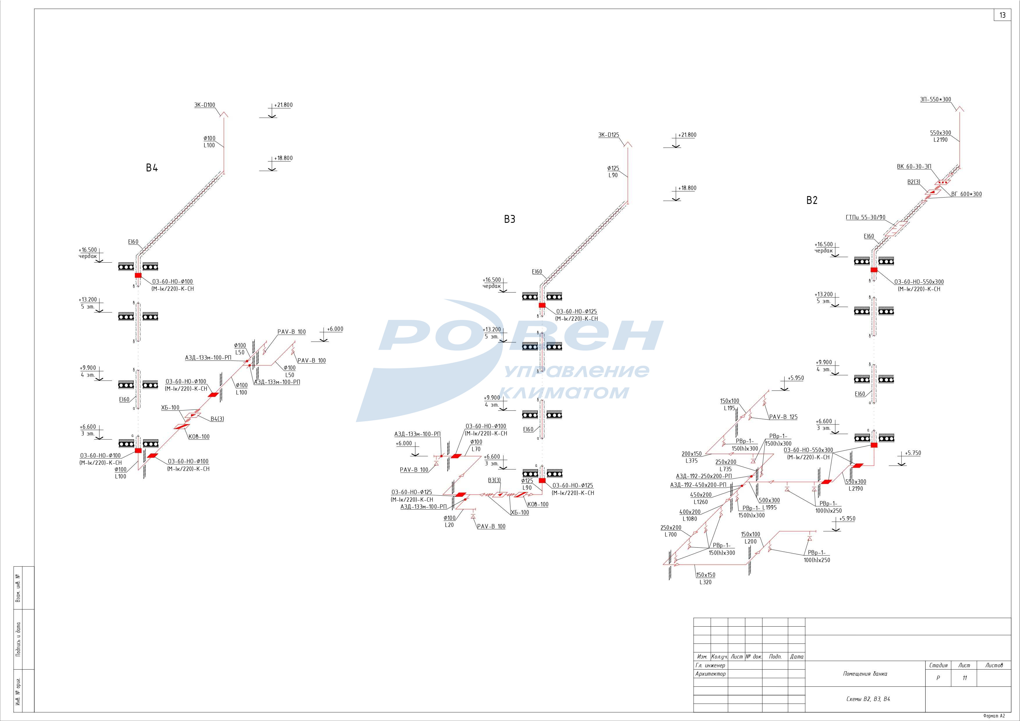 3 этаж - приточные системы - П3, П4, вытяжные системы -В6, В7.