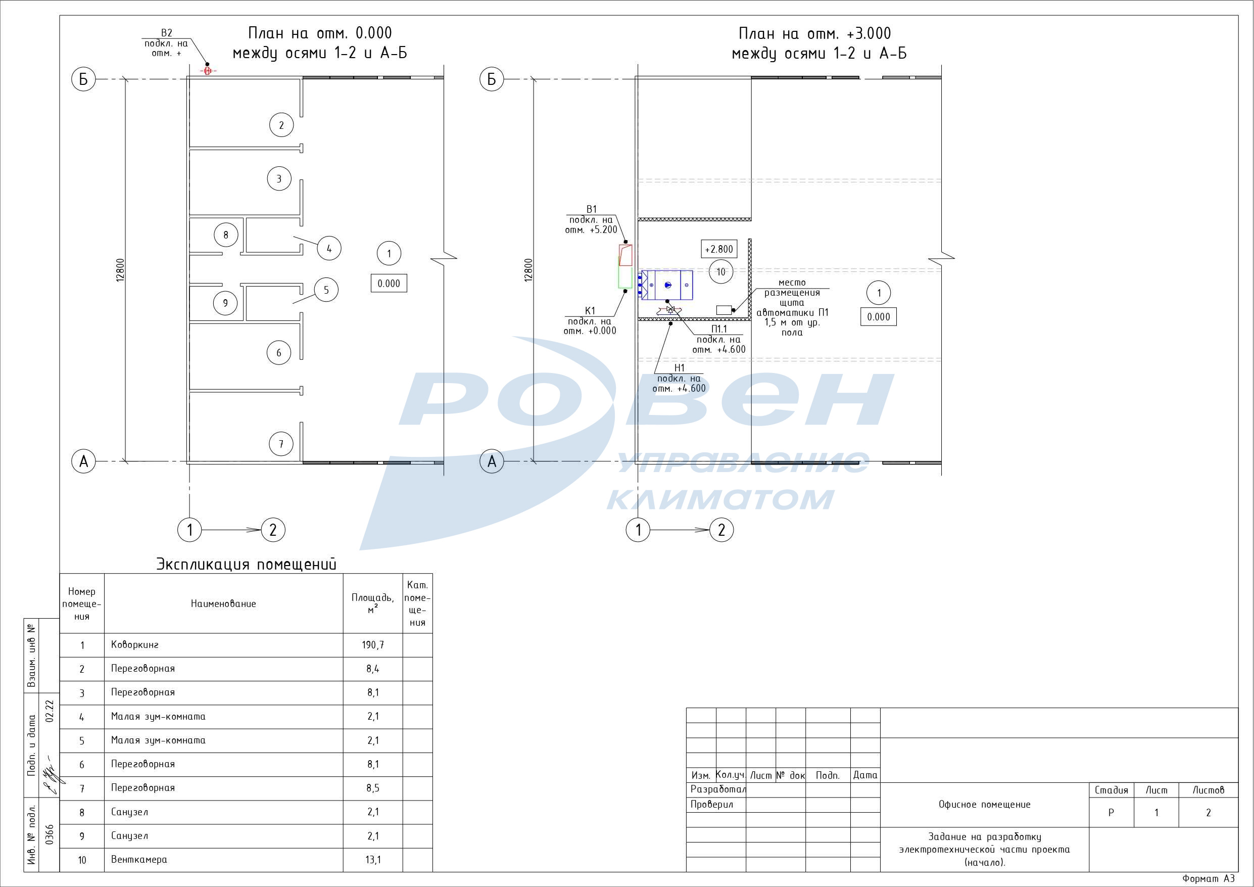 - коворкинг, зум-комнаты -  приточная система - П1, вытяжная система В1.